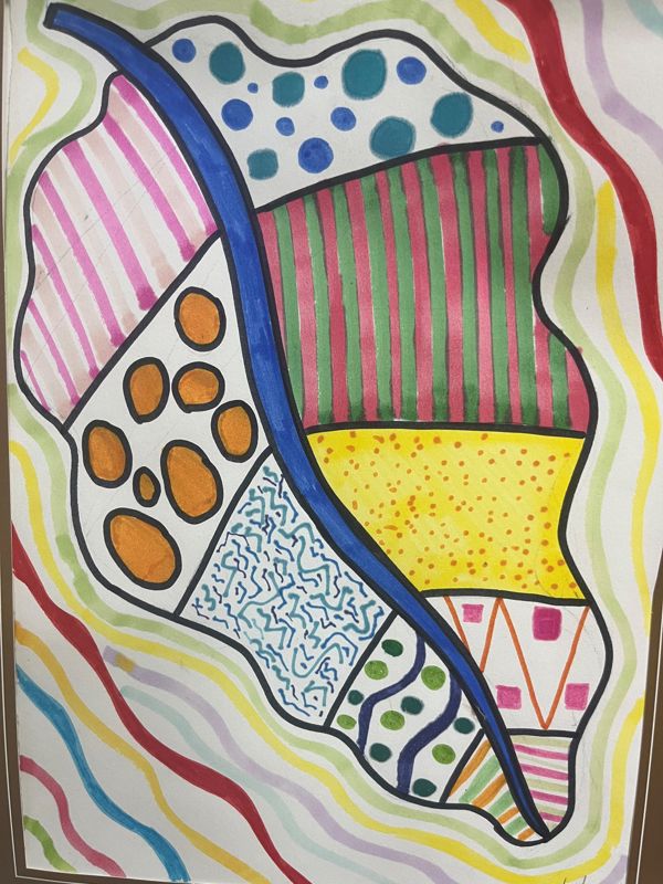 总的来说,这幅儿童手绘作品是一幅充满创意、色彩丰富、构图巧妙的佳作。它不仅展现了小艺术家对色彩和形状的敏锐感知,更传递出一种活泼、富有想象力的情感。这幅画不仅是一件艺术品,更是孩子内心世界的一次精彩呈现。